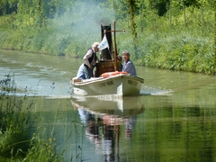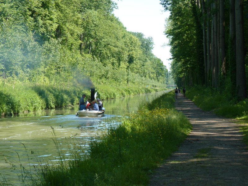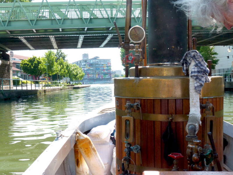 En ce début d'été 2013, le temps était propice à la balade. Le bateau à vapeur La Vigie a fait une remontée du canal de l'Ourcq depuis la darse du bassin de La Villette jusqu'à Mareuil-sur-Ourcq. Nos photographes l'ont suivie, à bord ou depuis le chemin de halage.